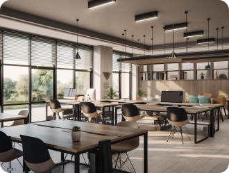 Locations de postes et/ou de salles de réunion à la journée ou au mois.